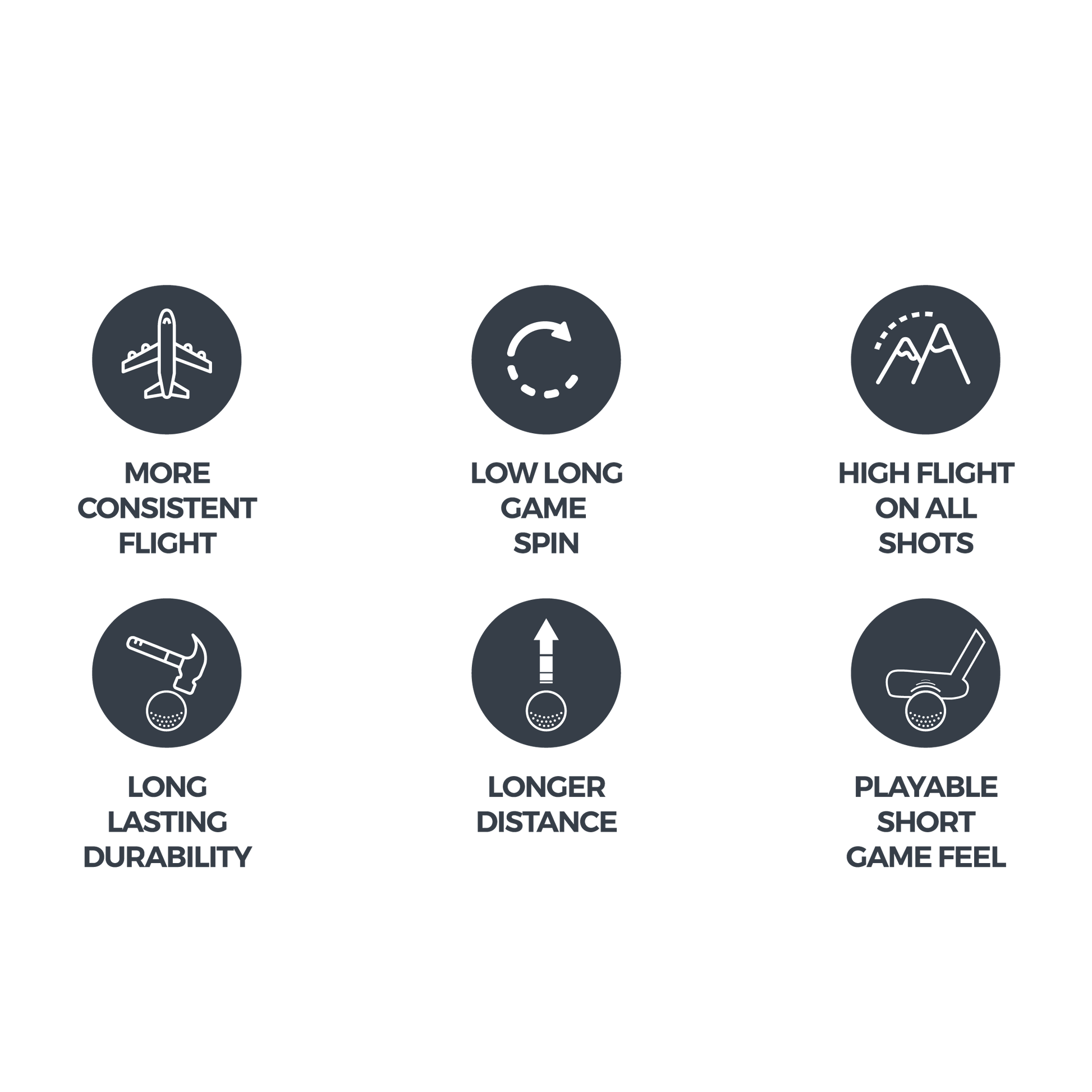 Our newly formulated more durable urethane cover has a softer feel and features a 314-dimple pattern. Our new dimple pattern was designed to minimize drag, resulting in a consistent ball flight in all playing conditions.